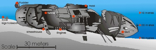 One of the most accessible wrecks throughout Indonesia. The wreck lies at a depth of 2 to 28 m about 19 m from the beach. The advantage of this dive the wreck is that even a beginner can master diver (OWD).